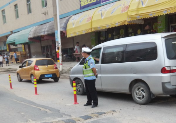 近期因子江――大深路段道路整改工程已全面进入施工阶段,这将给附近的安海职校、子江中学、水头小学等多所学近万名师生的上下学造成非常大的交通安全隐患。2015年10月30日上午10点半晋江市交管大队安海中队队长许文芳、副队长洪文伟亲临安海职业中专学校大门口周边进行校园交通安全隐患排查,并针对师生上下学高峰期的安全疏导给施工方及校方提出宝贵的建议,同中队将于周五下午放学高峰期派出部分警力在安海职业中专学校校大门前指导交通安全秩序,为安海职业中专学校师生的安全出行提供强有力的安全保障。