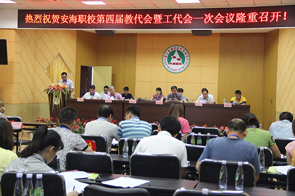 2016年5月28日,晋江安海职业中专学校第四届教代表会暨工代会一次会议在学校行政办公中心五楼会议室隆重召开,全体教师代表参加本次大会。