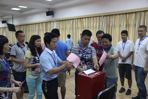 下午,各代表团的分组讨论,与会代表积极审议和讨论了2个报告和23项《学校规章制度(草案)》,对学校各方面工作提出意见建议,体现了教职工参与民主管理的积极性。分组讨论后,通过教师表决,对以上的工作报告均予以通过。最后,会议在国际歌的歌声中胜利闭幕。