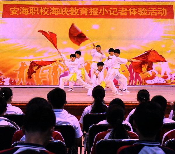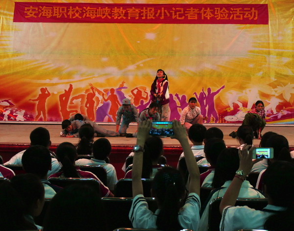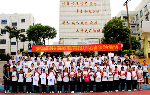 5月14日上午,安海职校迎来了一批小客人,他们用稚嫩而锐利的眼神打量着这所职业学校。随着一阵音乐响起,安职街舞社、声乐社同学们精彩的歌舞表演引动了他们热烈的掌声,而小记者们的“职业敏感性”还是让他们拿起了纸笔记录着,用手机拍摄着,记录下他们感受到的每一份精彩。随后,小记者们还品尝了安职酒管专业同学们精心制作的糕点、饮料,享受着美容专业同学们为他们做的面部护理,打量着美发专业同学为他们制作做的发型,还有许多小记者们拿起了彩笔,在安职工美专业同学们的指导下为自己制作手绘文化衫、脸谱面具;而安职机械专业同学们则带着一批小记者们用铜丝制作了许多小玩具……三个多小时的体验活动不知不觉就过去,小记者们恋恋不舍地告别了安职,度过了一段精彩难忘的体验时光。