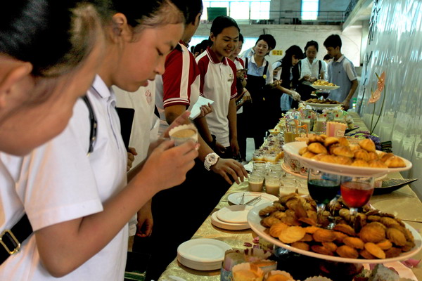 美食的魅力,从来都不可抗拒-----酒管专业同学们精心制作的点心、饮品勾动着小记者们的兴趣