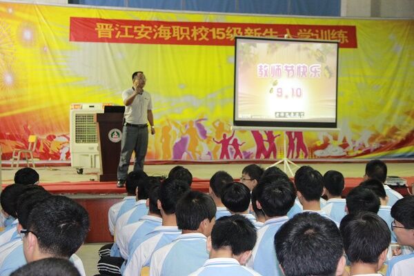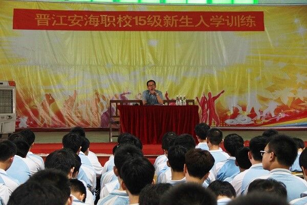 9月7日,安海职校迎来了近千名15级新生。为了使职一年新生能尽快适应职校学习与生活,树立专业意识,明确学习目的,端正学习态度,学校开展了为期两天的新生入学训练。在训练仪式上,李克勤校长致词,为全体新生详细分析了学习的重要性以及如何正确对待学习、生活及工作,同时对新生提出殷切的期望,希望大家在今后的职专生涯中认真学习、正确认识生活的意义。黄源华副校长做主题为《职校新生活――用心开启你的成长之路》的专题讲座,激励新生树立信心,学会学习,学会做人,学会做事,把自己培养成为一名对社会有用之人!各相关处室的主任也根据各自的职责对新生做了相关的培训。