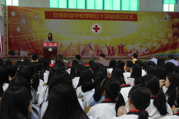 成立仪式上,晋江红十字会秘书长曹荣山宣读了安海职业中专学校红十字会成立批复,专职副会长陈礼新为安海职业中专学校红十字会授牌授印授旗并作了热情洋溢的发言。随后,李克勤校长代表学校红十字会发言,表示学校将大力支持红十字青少年工作,结合学校德育工作,开展丰富多彩的创新实践活动,进一步弘扬“人道、博爱、奉献”的红十字精神,关爱社会、关爱生命。