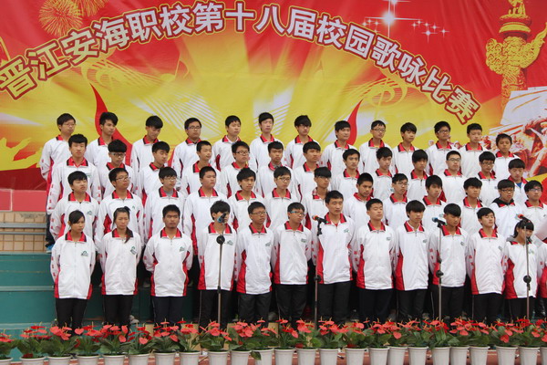 为纪念一二・九学生爱国运动,激发学生的爱国主义热情,充分展示新一代青年学生的精神风貌,营造和谐健康的校园文化氛围,12月9日下午,安海职校在学校体育场举办了第18届校园歌咏比赛。