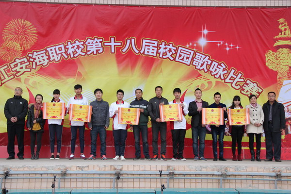 在经过各年段的初赛后, 15个班级脱颖而出,参加了此次决赛。比赛中,每个班级演唱两首歌曲,其中13级年段必唱歌曲为《中国人》,14级年段必唱歌曲为《扬帆安职》,另一首歌曲选唱。比赛过程精彩有序、气氛热烈,同学们精神饱满、信心百倍,用嘹亮的歌声传达了浓厚的爱国热情。经过激烈竞争,产生了一等奖两名,分别是14学2班、13美妆2班;二等奖四名,分别是13美妆1班、13学前2班、14美妆3班、14机械五年专;三等奖六名,分别是14酒管班、14数控2班、14财会1班、14美妆2班、13机械五年专、14网络班。比赛结束后,校领导为所有获奖班级现场颁了奖。