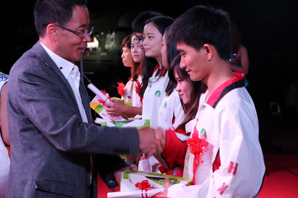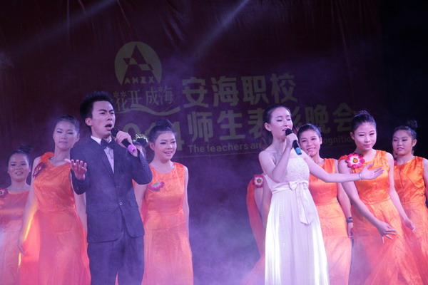 表彰大会上,李克勤校长发表了热情洋溢的讲话,他希望全体师生迎着职业教育大发展的旭日,团结一心,奋勇拼搏,一起开创安海职校更加辉煌灿烂的明天。颁奖过程中,穿插了精彩的文艺节目,有歌伴舞、现代舞、古典舞、歌曲联唱、武术表演等多种形式,尽情展现了安职学子热情洋溢、奋发向上的精神风貌。最引人关注的是以“感恩”为主题的师生互动环节,现场播放的获奖学生及家长的受访视频,使在场的每名学生都意识到自己对家庭、学校、社会所应担负的责任,热烈的掌声传达出同学们的共鸣。在主持人的带动下,学生们面向天空,发自肺腑地喊出了积蓄多年,想说却一直没说的话:“妈妈,我爱你!爸爸,您辛苦了!老师,您辛苦了!” 呐喊声响彻云霄,似春风化雨般滋润了许多同学干涸已久的感恩的心。最后,全场起立,齐唱安职校歌。表彰大会在感动、热烈的气氛中结束。