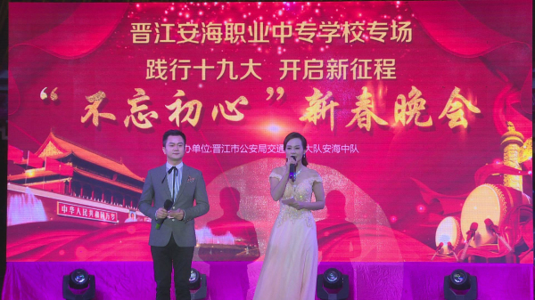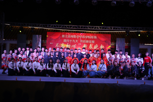 践行十九大,开启新征程!2018年1月5日“不忘初心”新春晚会――晋江安海职业中专学校专场,在安海镇安平桥景区文化广场隆重举行。本次晚会是安海镇践行十九大的汇报演出,也是安海职校展现学校风采、彰显时代精神的文化盛宴。为宣传十九大新精神,迎接2018新元年,安海职校师生积极筹备、精心组织举办了主题为“不忘初心”的新春晚会,营造出了和谐、健康、文明、团结的良好氛围,体现了安职师生积极向上的良好风貌。