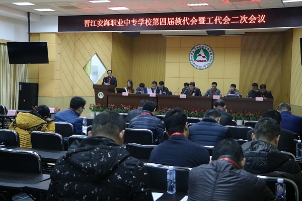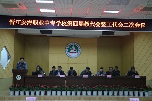 2017年12月30日,晋江安海职业中专学校召开第四届教代会暨工代会二次会议,全校近50名代表参加了会议。