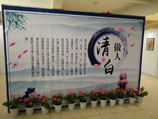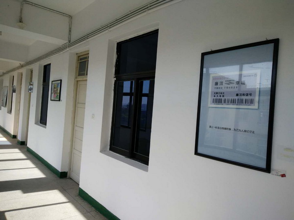 为了让我校党风廉政建设进入常态化,使这些优秀的作品充分发挥其价值。我校在这些作品集中展示后,利用这些作品将学校办公楼的走廊布置成廉洁文化长廊。