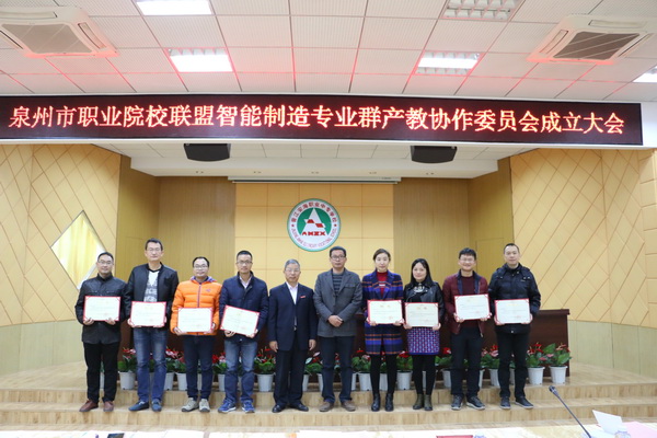 泉州市职业院校联盟智能制造专业群产教协作委员会成立大会讨论通过了《泉州市职业院校联盟智能制造专业群产教协作委员会成员名单》,交流讨论泉州市职业院校联盟智能制造专业群产教协作委员会2018年工作计划,为泉州市职业院校联盟智能制造专业群产教协作委员会委员颁发聘书。与会代表就智能制造专业的中高职衔接和校企深度融合专题展开了热烈的讨论,一致认为泉州市职业院校联盟智能制造专业群产教协作委员会的成立,将搭建泉州市职业教育中高职以及校企之间的互通桥梁,推进中高职衔接工作和校企深度融合工作,从而进一步推动泉州市的职业教育发展。通过中高职院校和企业三方的共同努力,在专业人才培养方案、课程体系建设、实训基地建设、师资队伍培养、校企合作内容等多方面不断丰富合作内容,将进一步做强、做精、做大泉州市的职业教育。