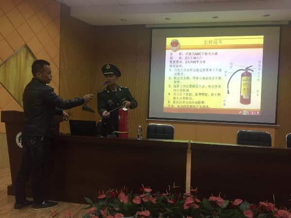 此次会议由保卫处刘汪洋主任主持,连燕晓排长首先以典型的学校火灾案例切入,分析了学校发生火灾事故的常见原因及学校的消防安全现状,重点讲解了学校火灾的预防和火灾扑救的基本方法,并现场演示了灭火器的使用,连燕晓以幽默风趣的讲解配合案例图片和宣传视频的视觉刺激,使得整个培训会场气氛活跃,取得了较好的培训效果。杨硕南副校长做最后培训总结,强调一岗双责和安全教育的重要性,牢固树立安全发展理念,大力弘扬生命至上,安全第一的思想,要求全体师生形成一种安全习惯,提升安全意识。