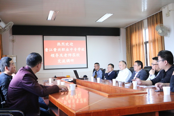 3月28日,晋兴职校谢志全校长一行十人莅临,我校李克勤校长带领校领导班子和部分中层行政欢迎了客人。两校领导介绍彼此省示范性现代职业院校建设经验,互通有无,畅谈得失,密切联系,增进友谊。同时双方还就晋江职教发展的格局和前景交流各自的意见和看法。两校皆为晋江中职教育的中坚力量,经常性开展互访调研不仅有利于彼此省示范性现代职业院校项目建设,更对晋江职教一盘棋发展大有裨益。