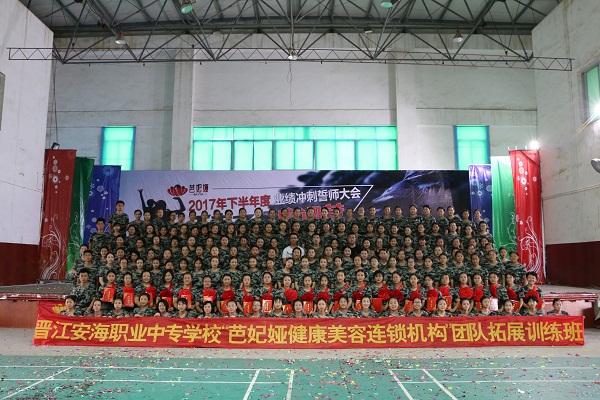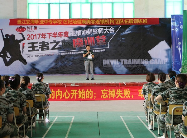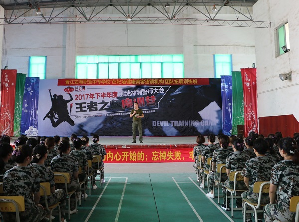 此次培训由安海职校和泉州市芭妃娅健康美容管理有限公司联合打造。培训主要分为两大部分:第一,进行团队标准训练及作风纪律意识和执行力训练,主要进行相关心理疏导,提升公司成员的团队责任和集体荣誉感;第二,以军事化管理训练模式进行个人和小组,个人和团队心里极限挑战训练,突破组长以上的管理成员胆怯心理及抗压心理。