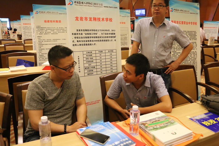 2017年5月25日上午,安海职校外联处王琪主任一行四个老师,参加了由中国海峡人才市场在南安市成功国际会展中心举办的南安市第三届大型公益性校企合作人才项目对接洽谈会。本次洽谈会有福建省及周边地区70多所高职院校、中职学校(含技工院校)及部分本科院校领导及毕业生就业工作部门负责人到现场直接参与,以学校设固定展位、企业流动洽谈的方式进行面对面洽谈交流。