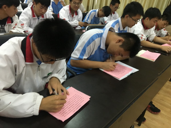 讲座伊始,谢舒心老师直言“窈窕淑女,君子好逑”、“哪个少男不钟情、哪个少女不怀春”是人之常情,但是中职生处于提高品德修养、学知识、长身体的关键时期,需要正确的引导;然后谢老师用生动的语言、丰富多彩的图片展示,向同学讲解什么是早恋、分析早恋的原因、早恋的危害,讲授男女生如何正确交往、注意心理卫生,多参与集体活动中,把精力多花在学生上,最后鼓励学生不要在春天去挥霍夏天,走好人生路,在讲座最后,学生共同宣誓“真爱需要等待”,并在立约卡上签上自己名字,表示真爱生命、真爱自己并尊重别人,为自己的生命和爱情负责。