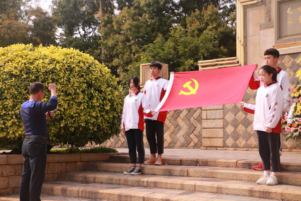 在雄壮的国歌声中,全体师生以以严肃恭敬的心态,向烈士们敬礼,党支部代表、团员代表敬献花圈,向烈士鞠躬默哀,听取革命烈士事迹介绍。团员代表陈丹苡同学发言慷慨激昂,代表全体团员表达坚定的决心,将努力成长为建设祖国的有用之才;党支部代表柯明春副书记讲述先烈们的事迹,鼓励师生继承先烈的遗志,为家乡的建设,为祖国的繁荣富强而努力学习,共创美好的明天,接着李克勤校长、书记带领教师党员重温入党誓词、团委书记许小茴带领新团员宣誓,并举行“青春心向党,建功新时代”签名活动,将活动推向了高潮。随后,全体师生排着整齐队伍、手握菊花,绕墓碑一周,依次将菊花摆放在烈士墓前,深深鞠躬,表达对烈士的敬意和怀念。