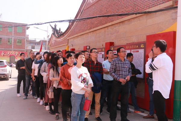 首先,在村支部书记许大限同志陪同下,师生们参观了红色走廊,听其讲述许集美同志对理想信念的坚定不移、对老区人民的深情厚爱、对老区建设促进工作的呕心沥血的事迹,增强了我们的历史责任感,也深感幸福美满安定生活的来之不易;随后进入祠堂,许集美同志亲笔题写的“尊宗敬祖”字匾让人感受他对家乡的深厚感情;最后,师生们还参观新店村的微型公园,每一处小景观都让人感受到村里人对家乡的热爱、付出以及肩负的责任。