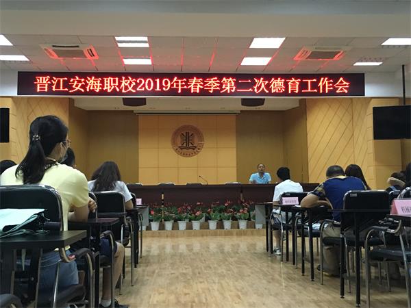 5月20日,我校在行政办公中心五楼会议室召开2019年春季第二次德育工作会议。蔡连顺副校长、政教处、保卫处、专业部主任及全体班主任参加了此次会议。
