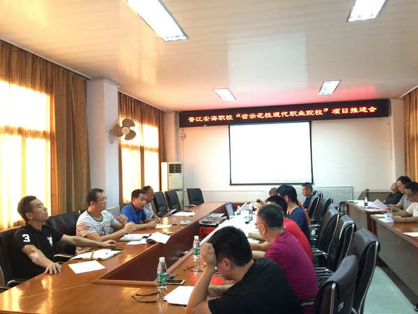 2019年9月28日,晋江安海职校召开2019年第二次项目建设推进会。会议由桂伟伦副校长主持,校领导、各项目负责人、相关部门工作小组等23人参加了会议。