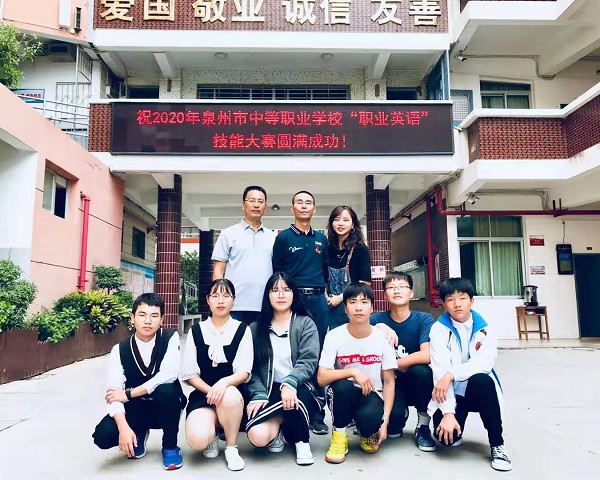 2019年10月27日,2020年泉州市中等职业学校“职业英语”技能竞赛在泉州举行,我校的王 楠/王宗豪在“职业英语”其他类专业组项目以一等奖第1名的好成绩(指导老师: 王茂东、邬思仁)成功晋级省赛;覃晓静/吕冬梅在“职业英语”服务类专业组项目取得三等奖(指导老师: 王茂东、陈建设)。