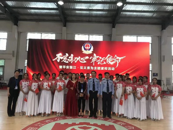 我校参演节目是大合唱《见义勇为之歌》。大合唱由学前教育专业老师罗晓言、刘欢指导,刘欢老师担任指挥,合唱队成员精挑细选,由19学前3班18名女生,19美发班9个男生组成。师生合作,完美演绎,得到在场的领导与观众的高度赞扬,安海镇派出所教导员还专门打电话向学校领导转达晋江市领导的赞赏及感谢之意。