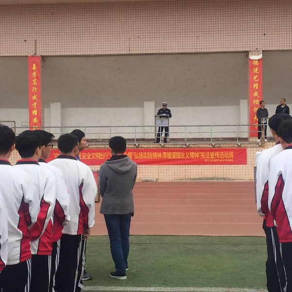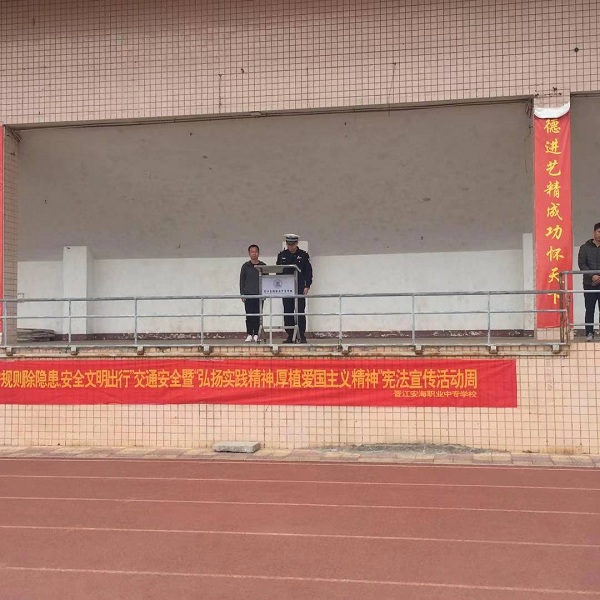 2019年12月2日是第八个“全国交通安全日”,12月4日是全国第六个宪法日。2号上午10时,我校利用升旗仪式,开展国旗下安全教育宣传活动,并邀请安海交警中队洪文伟指导员和安海法庭洪肇鑫法官莅临我校参加交通安全宣传月、宪法宣传周启动仪式。保卫处刘汪洋主任主持启动仪式,并介绍活动主题和活动流程。