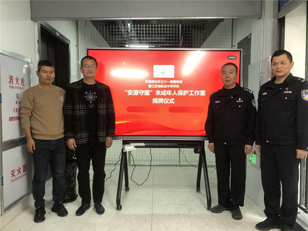 晋江市公安局灵源派出所三六一度警务站与晋江安海职业中专学校(经开校区)携手打造的“安源守望”未成年人保护工作室,于1月16日上午正式揭牌。