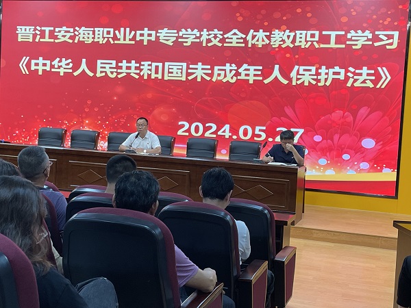 在第四个“民法典宣传月”之际,为提升未成年人对民法典和未成年人保护法等法律的认识,培养学生从小养成学法、知法、守法和依法维护合法权益的良好习惯,5月27日,晋江安海职业中专学校积极组织师生开展《中华人民共和国未成年人保护法》宣传教育活动。