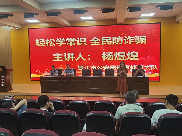 活动中,晋江市公安局刑事侦查大队杨煜煌警官围绕”什么是电信网络诈骗”、“如何防范电信网络诈骗” 等问题进行细致讲解。并结合所办理的实际案例,重点就常见的兼职刷单诈骗、冒充客服诈骗、网络贷款诈骗、网络购物诈骗、冒充公检法诈骗等多种诈骗方式向师生进行逐一介绍。同时,杨警官还向师生传授了”识诈、反诈、防诈”技能,提醒全体师生要以案为鉴,谨防上当受骗。
