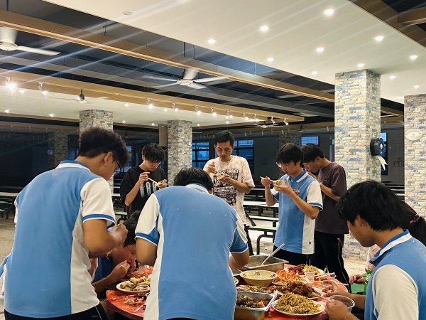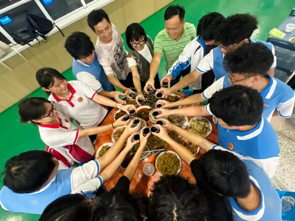 傍晚时分,食堂内暖意融融,留校学子们有序入座,脸上洋溢着期待的笑容,学校领导和班主任也来到现场,与同学们同坐一桌,一边品尝美食,一边唠着加长,党总支书记林振盛亲切地询问大家的学习情况,并叮嘱同学们遇到困难及时沟通。来自机电本科专业的同学们说:“原本以为中秋只能孤单在校,没想到学习准备了丰盛的团圆饭,和老师同学们一起过节,是一种不同的体验!”