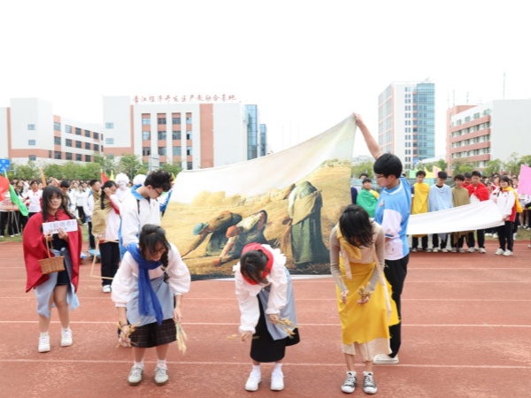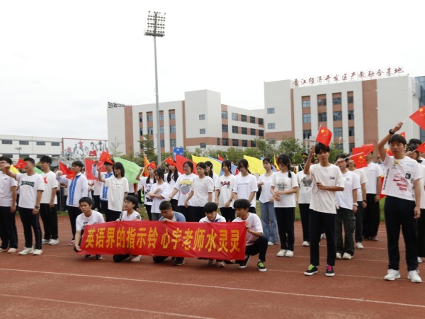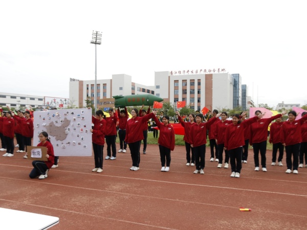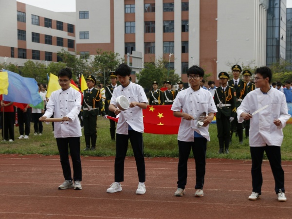 志逐青云砺锋芒,经开学子展韶华。10月22日上午,运动会开幕式在经开校区体育场庄重启幕。仪式由陈钰冰老师主持,全校师生齐聚赛场,共赴这场青春与梦想的邀约。伴随着雄壮激昂的《运动员进行曲》,经开校区各班级方阵迈着铿锵步伐依次走过主席台,队列中处处彰显校区专业特色——动漫专业方阵扮演动漫角色,以灵动队形还原经典名画场景;中西面点专业学子身着洁白厨师服,手持裱花袋、擀面杖等实训工具,行进间穿插揉面、裱花的模拟舞蹈动作,将专业技能与韵律感完美融合,既显实训功底,又展青春活力;财会专业学子们将专业特质与维护国家主权的坚定立场紧密相连,鲜明表达“台湾一定属于中国”的共同信念,彰显新时代青年守护国家统一的责任与担当;酒店管理与服务专业学子以标准礼仪姿势展现职业风采;计算机专业、数字媒体技术专业学子则手举自制的“校庆30周年”牌子,随着步伐整齐挥动,同时响亮喊出“安职三十载,我们向未来!母校生日快乐!”的祝福,将专业技术呈现与校庆情怀紧密结合,用青春之声传递对母校的感恩与祝愿,创意迭出的编排、充满职业气息的符号,将经开校区学子“懂技能、敢拼搏、有活力”的风貌展现得淋漓尽致。