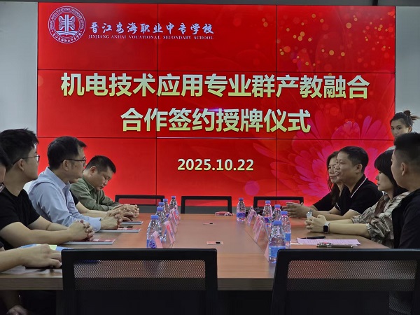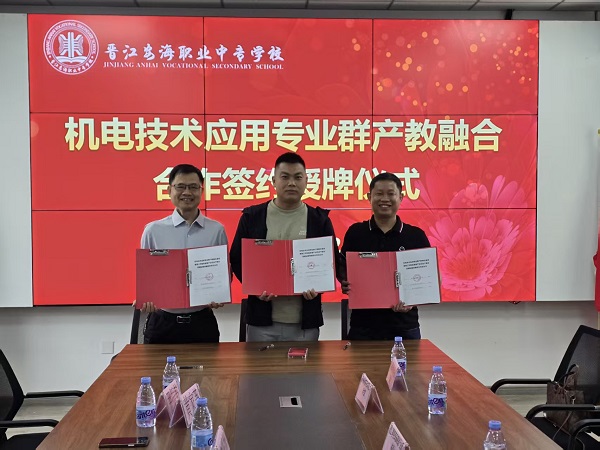 10月22日下午,晋江安海职业中专学校与泉州睿和数字技术有限公司、晋江市智能装备产业协会合作签约授牌仪式在安海职校隆重举行。晋江安海职业中专学校副校长翁天妙、泉州睿和数字技术有限公司总经理叶兰斌、晋江市智能装备产业协会秘书长黄文彬、晋江市智能装备产业链党建工作指导组专干林美泳等三方代表出席仪式。此次合作旨在贯彻落实国家关于大力发展职业教育和推进校企合作的决策部署,通过共建实训基地、共育技能人才,深化产教融合,为晋江智能制造产业高质量发展提供坚实的人才支撑。仪式上,三方代表共同签署合作协议,并授“生产实训基地”牌匾。