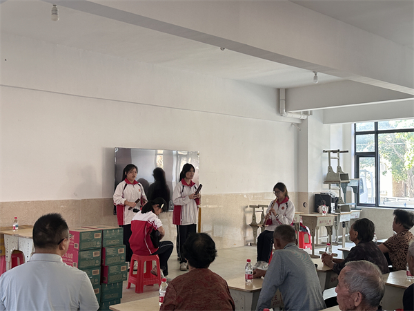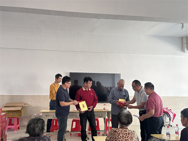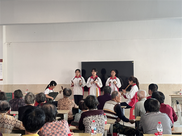 上午9时,活动在我校学生志愿者的南音表演中拉开帷幕,丝竹声起,三弦、洞箫奏响古朴旋律,志愿者们端坐台前,婉转唱腔里藏着岁月故事与生活热爱。台下老人听得入神,随节奏轻晃,满是沉醉。一曲终了,掌声交织,温暖重阳清晨,让非遗韵味在时光里芬芳。党员代表则与老人们亲切交谈,询问身体情况,老人们也敞开心扉,畅所欲言。最后,我校党总支书记黄源华、党总支委员刘庆建和西边村村委、老人会代表共同为60周岁以上老人送上慰问金和祝寿牌,给老人送去温暖与关怀。