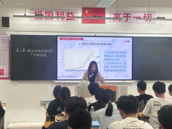 为深入贯彻落实习近平总书记关于思政课建设的重要指示精神,推动学校思政教育提质增效、落实立德树人根本任务,10月30日上午,晋江安海职业中专学校校长杨硕南走进思政课堂,听取了张康静教师执教的《推动形成全面对外开放新局面》思政课。