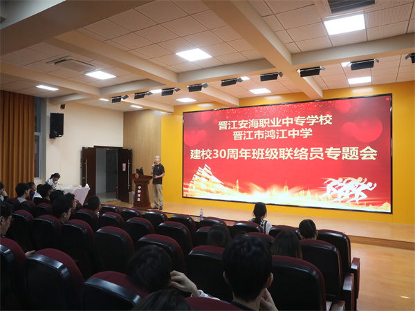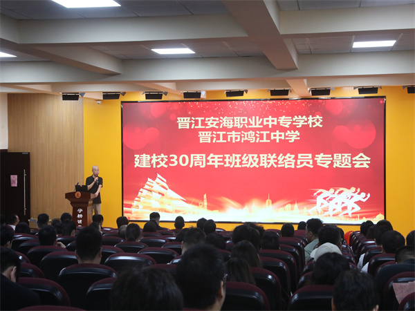 春华秋实,桂子飘香。11月16日,我校隆重召开晋江安海职业中专学校、晋江市鸿江中学建校三十周年班级联络员专题会。一百八十余名历届班级联络员重返校园,共商母校发展大计。党总支委员刘庆建主持会议,并简介学校近期重点建设成果和未来愿景。杨硕南校长做总结发言。学校领导班子和历届班主任一起参加了会议。