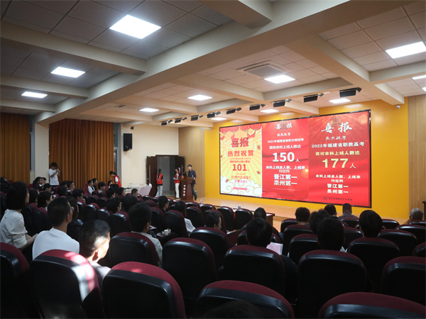 刘庆建委员首先代表学校向与会校友表示热烈的欢迎。三十年匠心育人,三十载砥砺奋进,学校为区域经济社会发展和高一级学校输送了两万余名毕业生。安职学子是学校的宝贵财富,也是学校社会声誉和办学成果的直接承载者和最佳体现者。近年来,学校精准对接国家职教政策导向,切实用好职教红利,福建省改革发展示范校、福建省示范校现代中职学校、福建省“双高计划”建设等综合项目的圆满完成为学校进一步夯实发展根基,助力学校驶入发展“快车道”。特别是2020年福建省实施高职分类招生考试制度以来,学校以101人本科上线迅速打开局面,并不断自我突破,屡创新高,2024年本科上线高达370人,截止2025年本科上线共计1351人。这一份含金量极高的人才培养数据让师生们备受鼓舞,这样的荣誉同样属于每一个从这里走出去的毕业生。今后,学校将继续锚定“省内标杆、国内一流”的宏伟目标,让更多学子在这里点亮梦想、成就出彩人生!