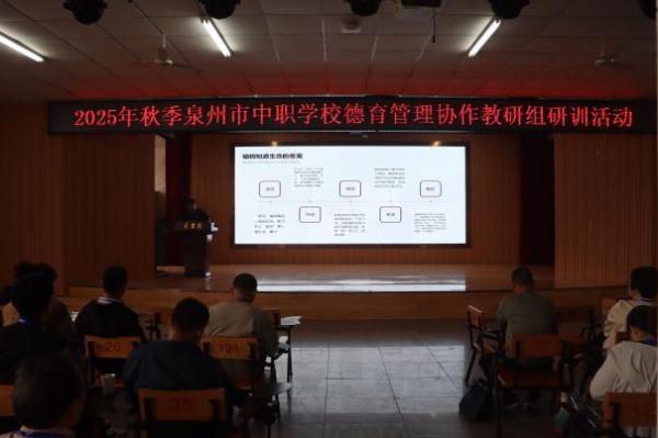 为深入推动中职学校构建立德树人新格局,加强校际德育管理交流,2025年10月30日,以“育人,从‘XIN’入手”为主题的2025年秋季泉州市中职德育管理协作教研组研训活动在安溪陈利职业中专学校顺利举行。晋江安海职业中专学校作为受邀单位之一,积极参与此次研讨,并由校党总支委员刘庆建代表学校开设专题讲座。