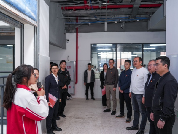 随后,嘉宾们在B栋一楼集中观看了展现我校师生学习生活的活动视频。视频中,同学们在课堂上专注求知、在实训中刻苦钻研、在各类活动中朝气蓬勃的模样,生动呈现了基地“以学促练、学以致用”的育人氛围,赢得了现场嘉宾的一致好评。