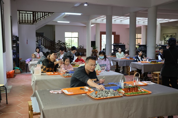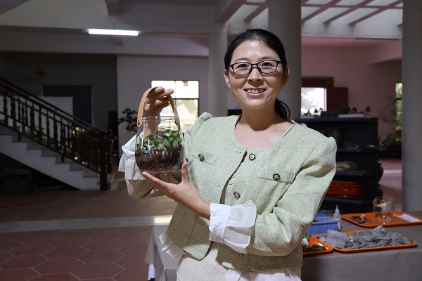活动现场绿意盎然,气氛温馨。在专业老师的细致讲解与指导下,老师们亲手挑选植物、搭配砂石、装点饰物,一步步构建起属于自己的秋日微景观。方寸之间,苔藓青翠、枝叶舒展、趣味小品点缀其中,一个个充满个性与巧思的“迷你世界”在指尖悄然诞生。大家沉浸于创作,彼此交流构思,笑语声中烦恼尽消,专注之时心绪宁静,真正体验到了园艺带来的专注之美与创造之乐。