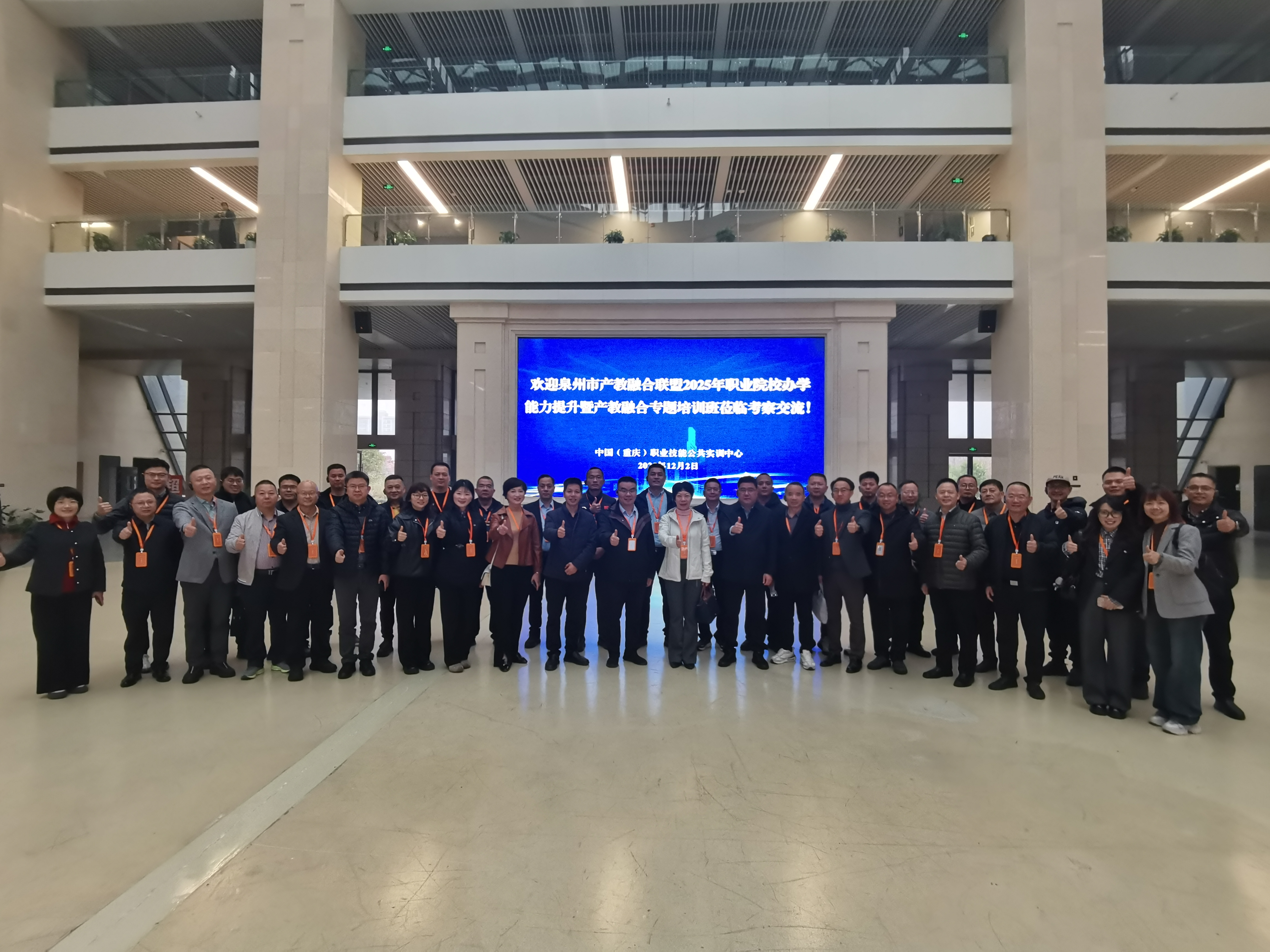 本次培训在重庆工商职业学院举行,内容涵盖“十五五”职业教育政策解读、人工智能赋能职教发展、高水平专业群建设、产教融合实践模式等多个专题,并通过专家讲座、实地考察、分组研讨等多种形式展开交流。培训期间,黄源华书记与来自泉州市教育局、各职业院校的代表共同学习了重庆在职业教育高地建设、公共实训基地运营、校企协同育人等方面的先进经验,并围绕“十四五”成效总结与“十五五”规划思路进行了深入研讨。