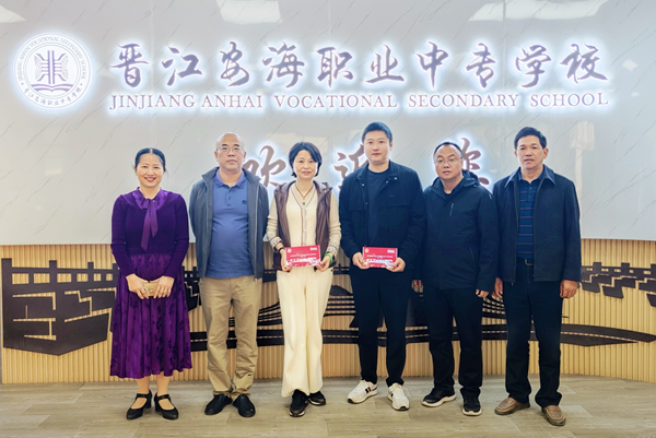 12月17日上午,在安海职校、鸿江中学喜迎建校三十周年华诞之际,学校迎来了一批情深意重的家乡客人。安海镇西安村慈善协会负责人、上海市恩斯凯投资有限公司董事长、上海市政协委员、福建省海外联谊会副会长颜丽园女士,晋江鑫琪公司董事长、菲律宾安海公会副理事长颜才巡先生,安海镇西安村党支部书记、村长颜锦帛先生一行专程到校,关心指导校庆筹备工作,共话学校发展未来。
