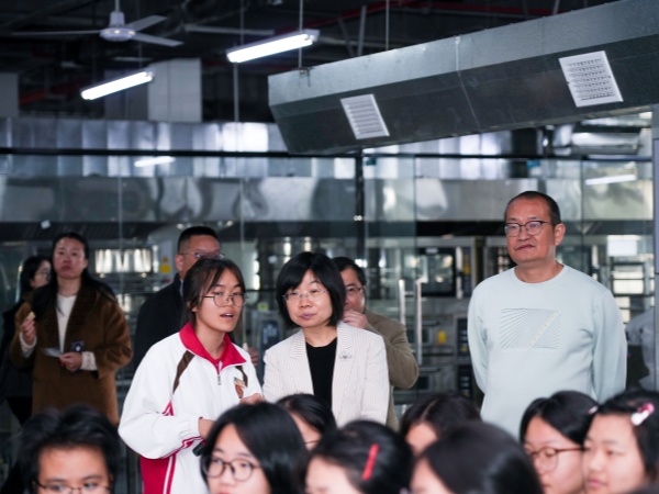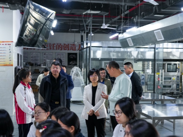 12月18日,绍兴市人民政府副市长张雪率领市教育局副局长方邵旭辉、高教处负责人沈华梅等一行在晋江经济开发区管委会党组成员、一级主任科员饶一兵陪同下,赴晋江安海职业中专学校经济开发区校区开展产教融合专项考察调研。学校副校长桂伟伦热情接待考察团,全程陪同参观交流,23级酒店管理2班学生孟艳以校导游身份全程专业讲解,生动展现了学校产教融合的丰硕成果与学子的良好精神风貌。