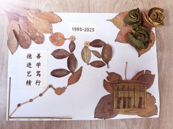 活动前期,学生们走出课堂、漫步校园,捡拾形态各异的落叶,将秋日校园的生机与诗意悉心收藏。创作过程中,大家充分发挥想象力与创造力,以落叶为笔、以创意为墨,围绕“校庆祝福”“校园风光”“专业特色”“成长感悟”等主题精心构思,通过剪、拼、贴、饰等手法,将零散落叶转化为一幅幅生动鲜活的作品。有的作品复刻了校园标志性建筑,勾勒出母校30载办学的静谧风貌;有的作品融入专业元素,展现安海职专特色育人成果;有的作品以文字与图案结合,写下对学校未来发展的美好期许,每一幅作品都承载着学生对母校的深厚情感与真挚祝福。