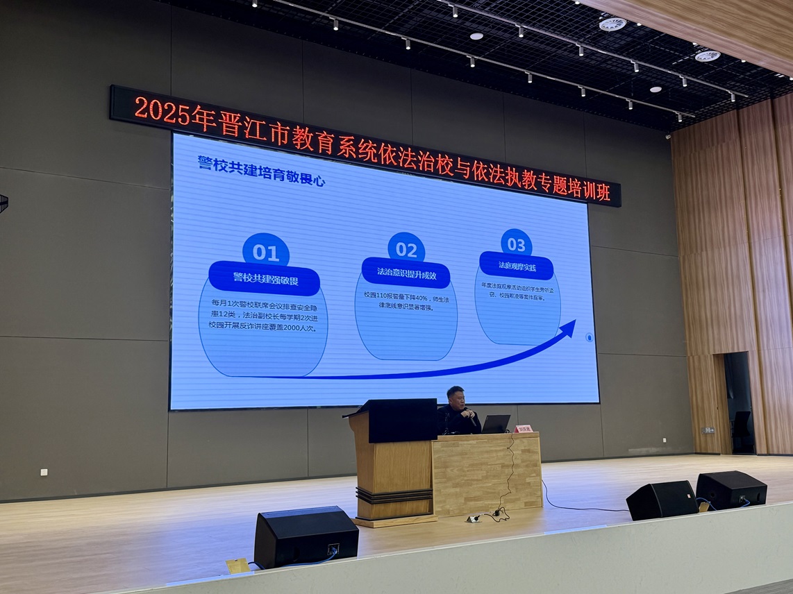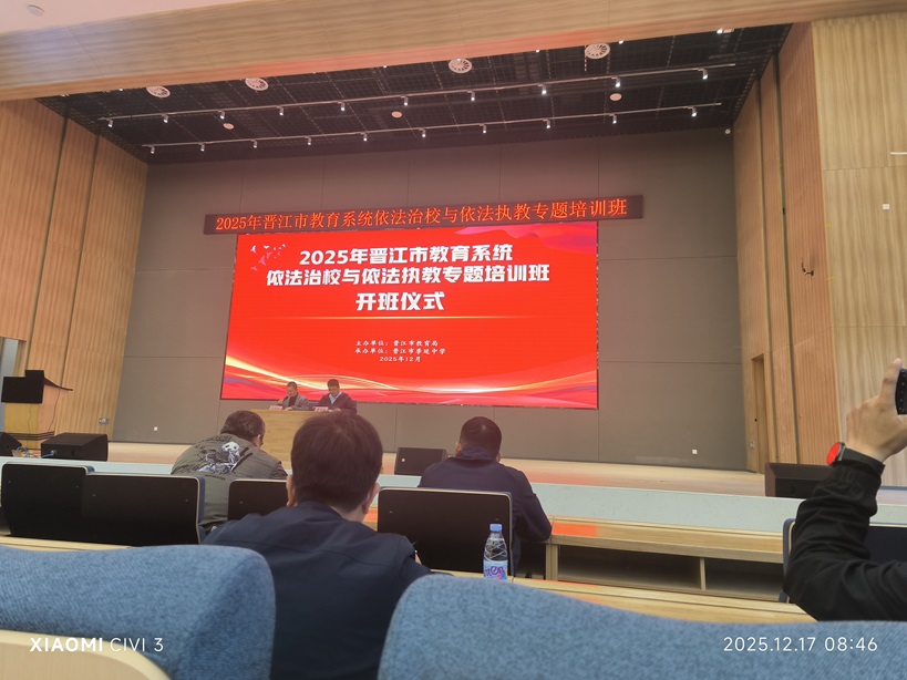 为深入推进全面依法治国,全面贯彻落实学校依法治校与依法执教,推动教育治理现代化步伐,强化中小学依法治校能力,提升教师依法执教的水平,规范办学行为、维护师生权益、构建和谐校园,推动教育高质量发展,加快教育强市建设。12月17日-19日,2025年晋江市教育系统依法治校与依法执教专题培训班在晋江市季延中学举行,我校党总支委员刘庆建代表学校参加培训,并做案例分享交流。