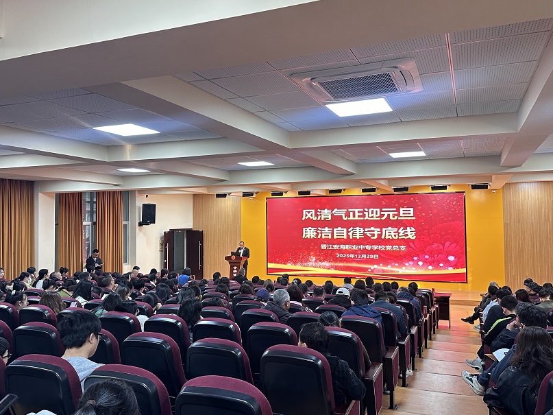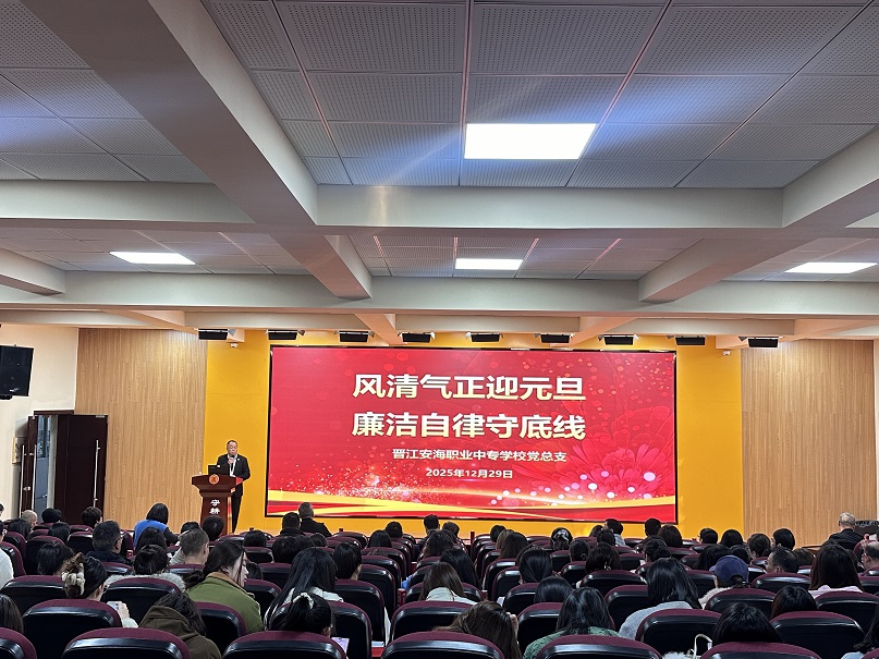 元旦佳节将至,为深入贯彻落实全面从严治党要求,切实加强节日期间党风廉政建设,进一步增强全体党员干部及公职人员的纪律意识、规矩意识和廉洁自律意识,筑牢拒腐防变思想防线,营造风清气正的节日氛围和育人环境,2025年12月29日,晋江安海职业中专学校召开全体党员干部及教职工元旦前廉政警示教育大会。全体党员干部、教职工参加会议,党总支书记黄源华主持会议。