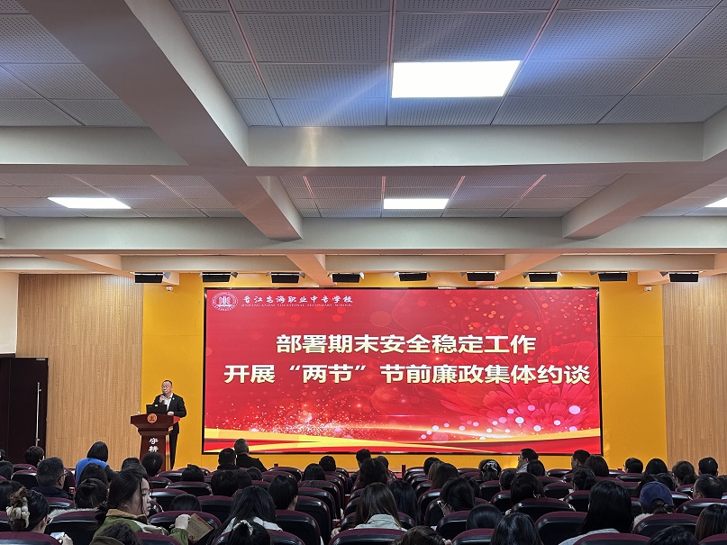 元旦将至,佳节思廉。为持续深化党风廉政建设,筑牢师德师风根基,营造清正廉洁、立德树人的校园生态,2025年12月29日,晋江安海职业中专学校开展2026年元旦、春节节前廉政集体约谈。全体教职工参加会议,党总支书记黄源华主持会议。