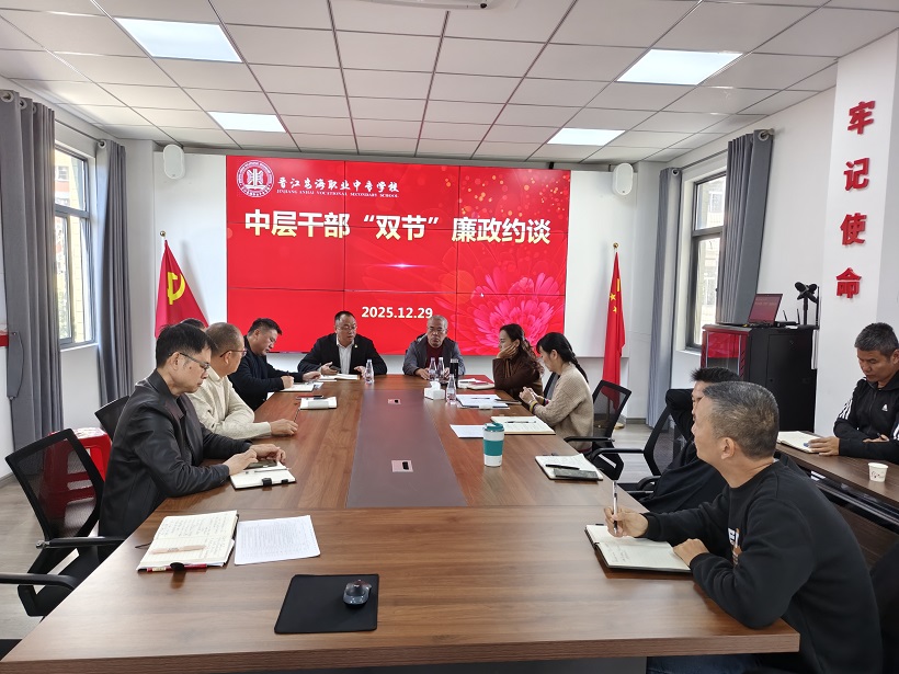 为学习贯彻习近平总书记关于党的建设的重要思想,持续推进党风廉政建设和反腐败斗争,引导大家增强廉洁自律意识,守牢思想防线。2025年12月29日上午,晋江安海职业中专学校召开全体中层干部节前集体廉政谈话会。党总支书记黄源华主持会议,校领导班子及全体中层干部参会。