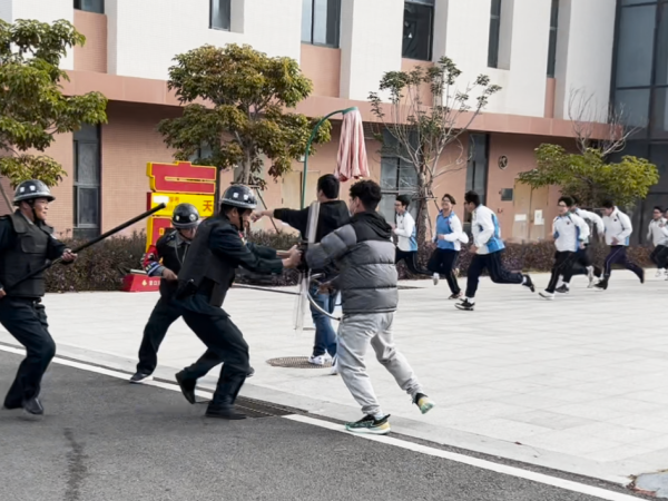 为进一步强化校园安保队伍反恐防暴安全意识,全面提升安保人员应对突发暴恐事件的快速反应与应急处置能力,切实筑牢校园安全防线,保障全校师生生命财产安全,维护校园正常教育教学与生活秩序,12月24日下午,晋江安海职业中专学校经济开发区校区保卫处牵头组织全体保安人员开展了专项反恐防暴演练活动。