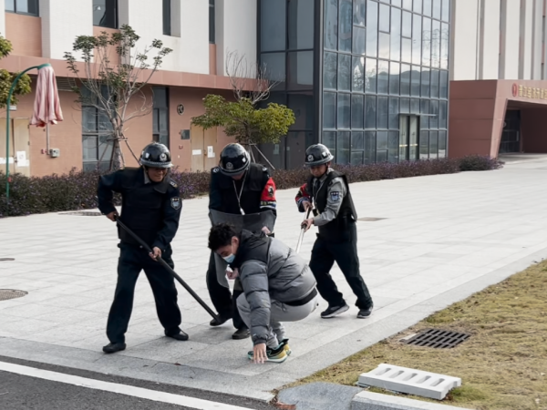 活动伊始,保安队长李志朋率先开展反恐防暴知识专题培训,围绕突发暴恐事件的应对原则、核心处置流程等关键内容细致讲解,明确了预警、响应、联动、处置各环节的职责要求。同时,他现场演示了盾牌、防暴钢叉、警棍、防刺服等各类防暴器械的功能用途、规范使用方法及实操技巧,逐一对每位安保人员的器械操作动作进行纠正指导,确保大家人人熟练掌握、规范运用。培训结束后,实战演练正式开展,模拟一名不明身份人员强行闯进校园并蓄意滋事,安保人员接报后迅速响应,严格按照校园反恐防暴应急处置预案,分工明确、配合默契,熟练运用各类防暴器械形成合围之势,快速高效将可疑人员控制,整个演练流程紧张有序、处置规范,圆满达成预期目标。