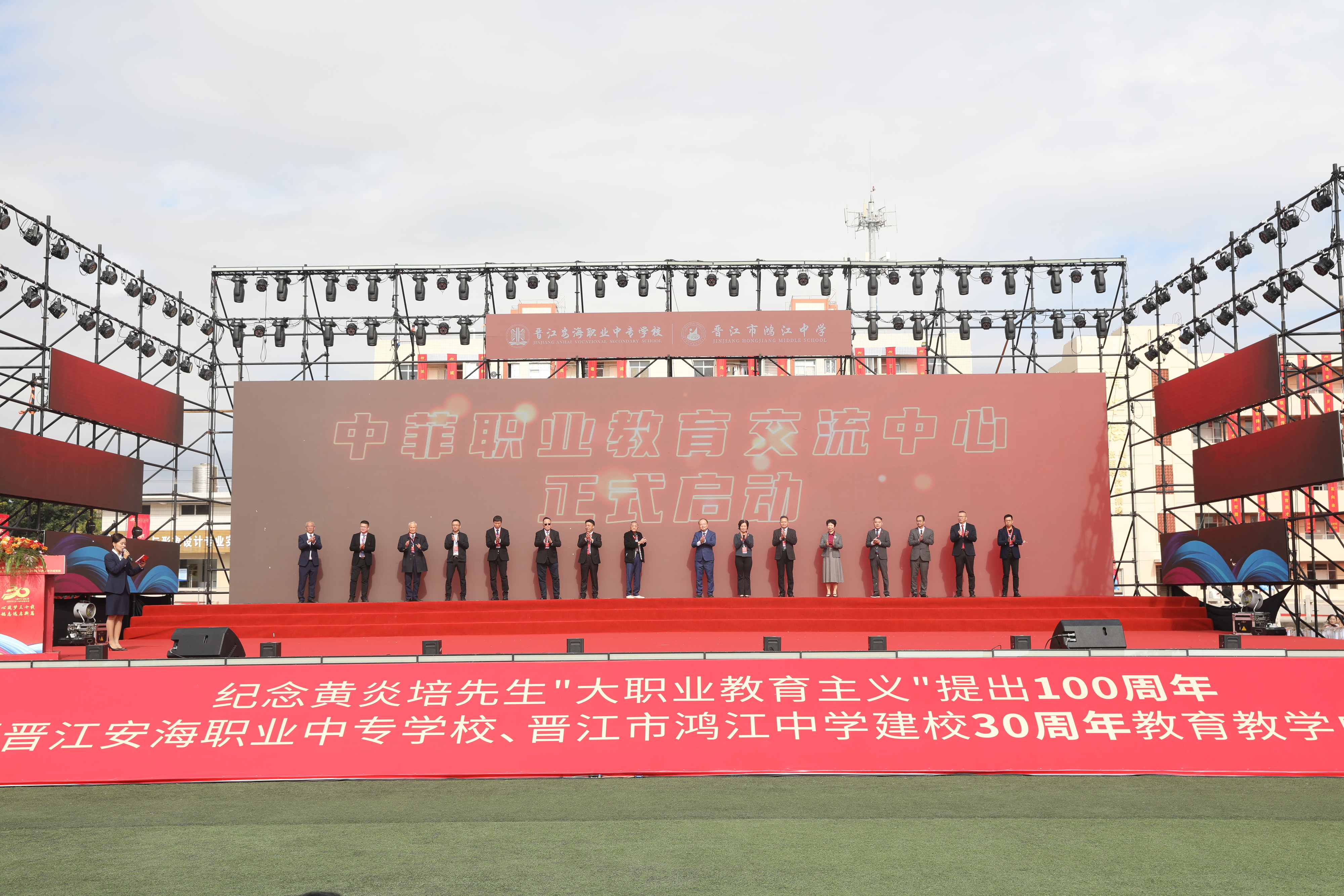 庆典上最具前瞻性的环节,当属“中菲职业教育交流中心”的正式启动仪式。这一中心由晋江安海职业中专学校携手菲中国际交流中心、菲律宾菲华商联总会、侨中学院、中正学院等单位联合成立,旨在打造一个集课程开发、师生交流、技能认证于一体的国际化合作平台。在众宾见证下,陈祖昌先生、中国侨联副主席齐志、福建省侨联副主席吴子昌等中菲双方代表共同按下启动键,标志着中菲职业教育合作进入实质性阶段。